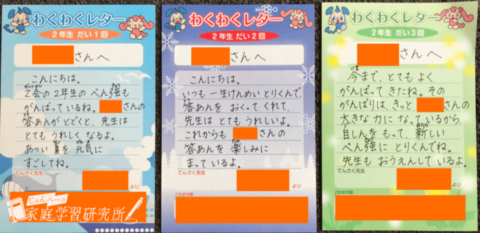 - 「わくわくレター」は、Z会の担当の先生から子どもへの手書きのお手紙